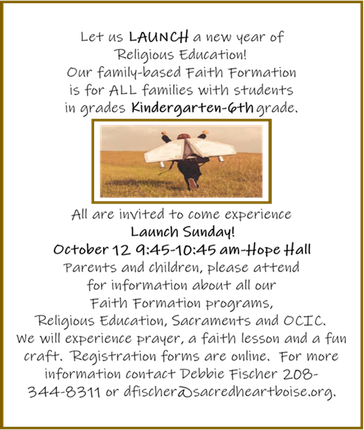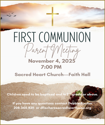 As Sacred Heart Catholic Community on Boise's Central Bench, we are called to help each person encounter the living Christ by participating in vibrant worship and prayer, deepening our understanding of and witnessing the Gospel message, and reaching out to those in need.